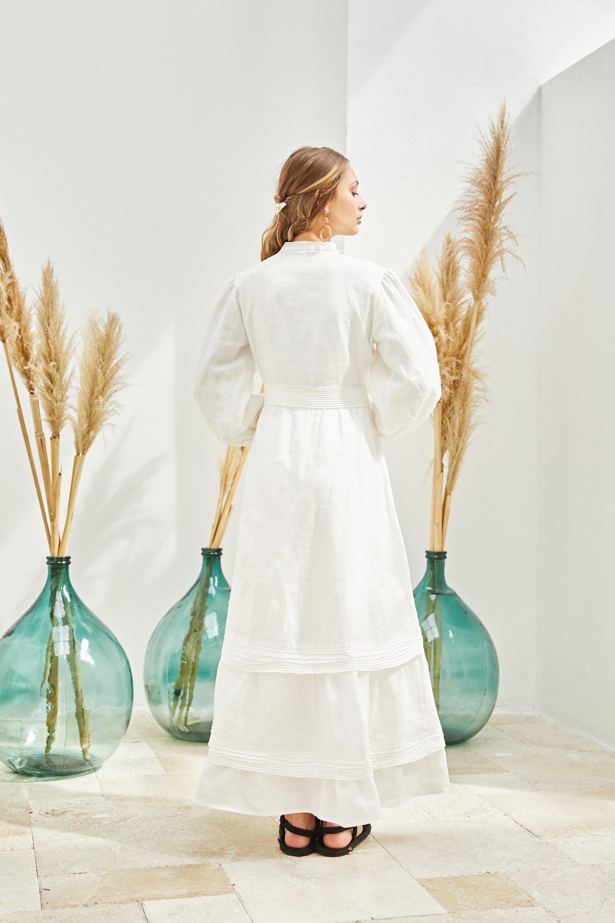 Swan Maxi Keten Elbise
